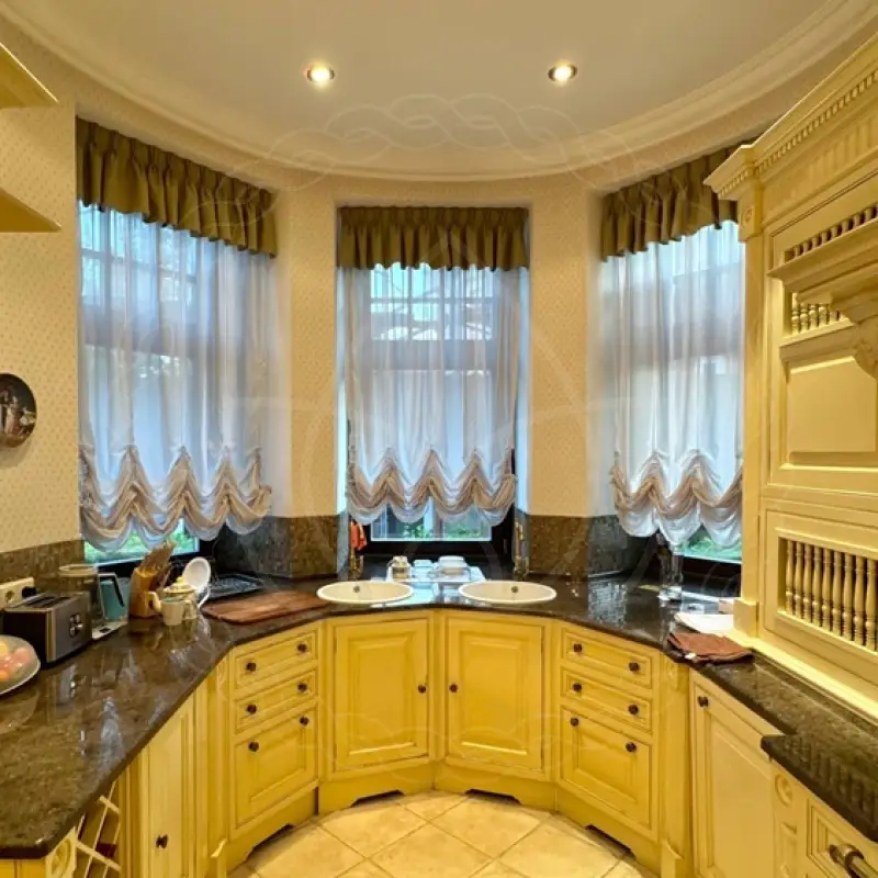 Дизайн оконного оформления для этого проекта придумала наш декоратор Елена. Заказчики проживают в деревне Барвиха (ГО Одинцовский) Они обратились в нашу студию текстильного декора после визита в дом друзей, где увидели оформленные нашими специалистами окошки в гостиной и столовой.