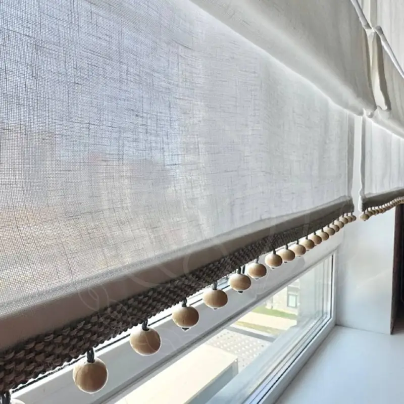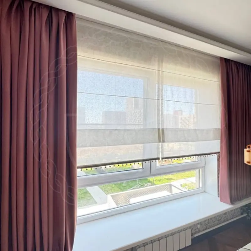 - Тип Портьеры с равномерной сборкой верха и римские шторы из тюля