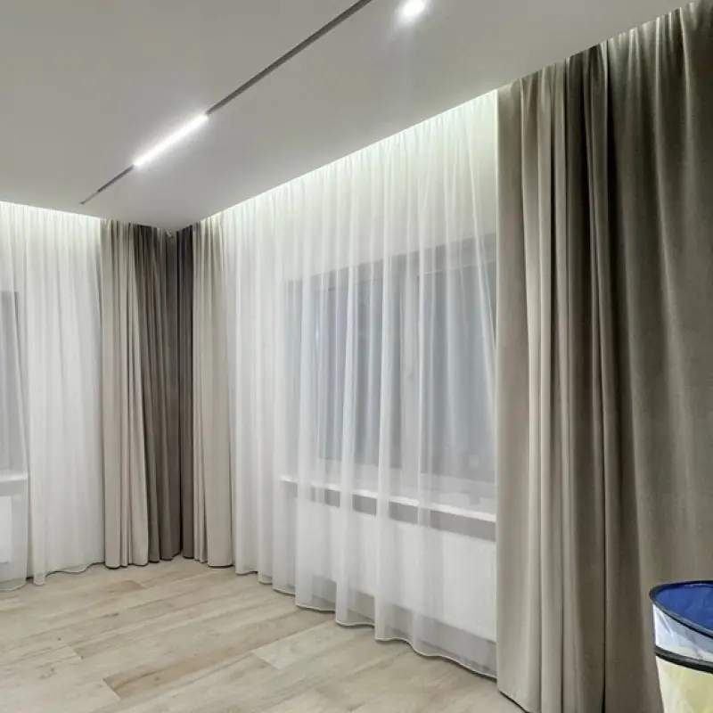 - Тип Прямые портьеры и тюль на шторной ленте