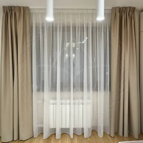 - Тип Портьеры и тюль с равномерной сборкой верха