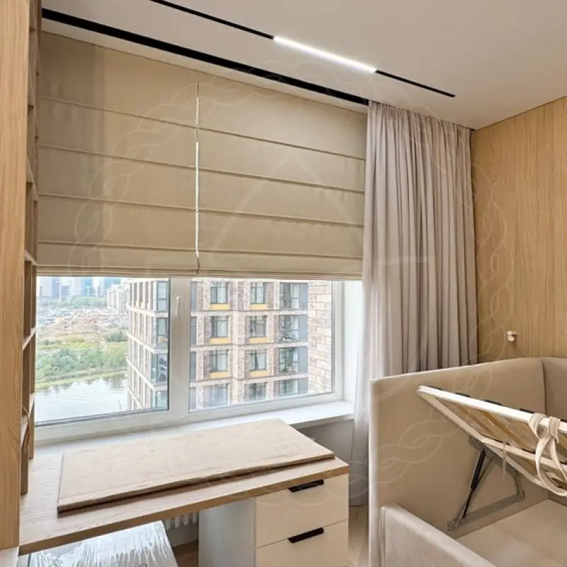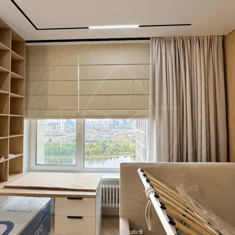 - Тип Римская штора из ткани блэкаут и декоративный тюль