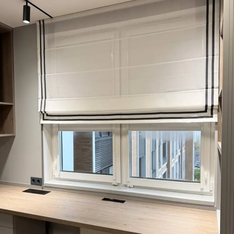 - Тип Портьеры на равномерной сборке верха, римские шторы