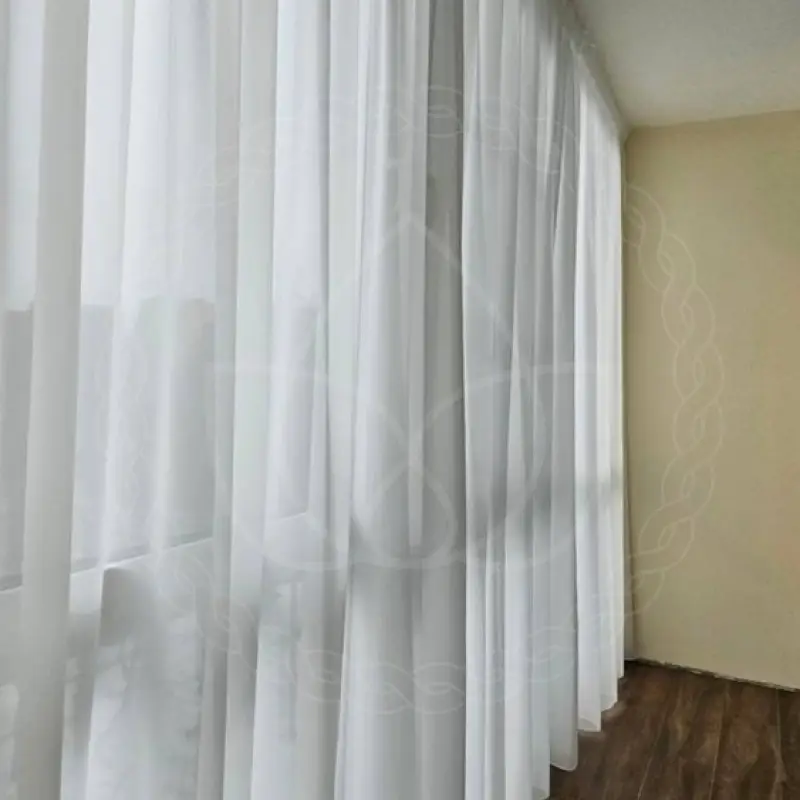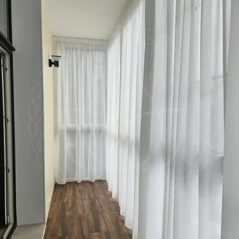 Равномерная сборка создает элегантную драпировку за счет череды воздушных мягких складок на шторном полотне. Тюль-креп, из которого пошиты занавески, прекрасно держит нужную форму. Благодаря плотному плетению волокон, он остается легким и прочным, а также не требует глажки.