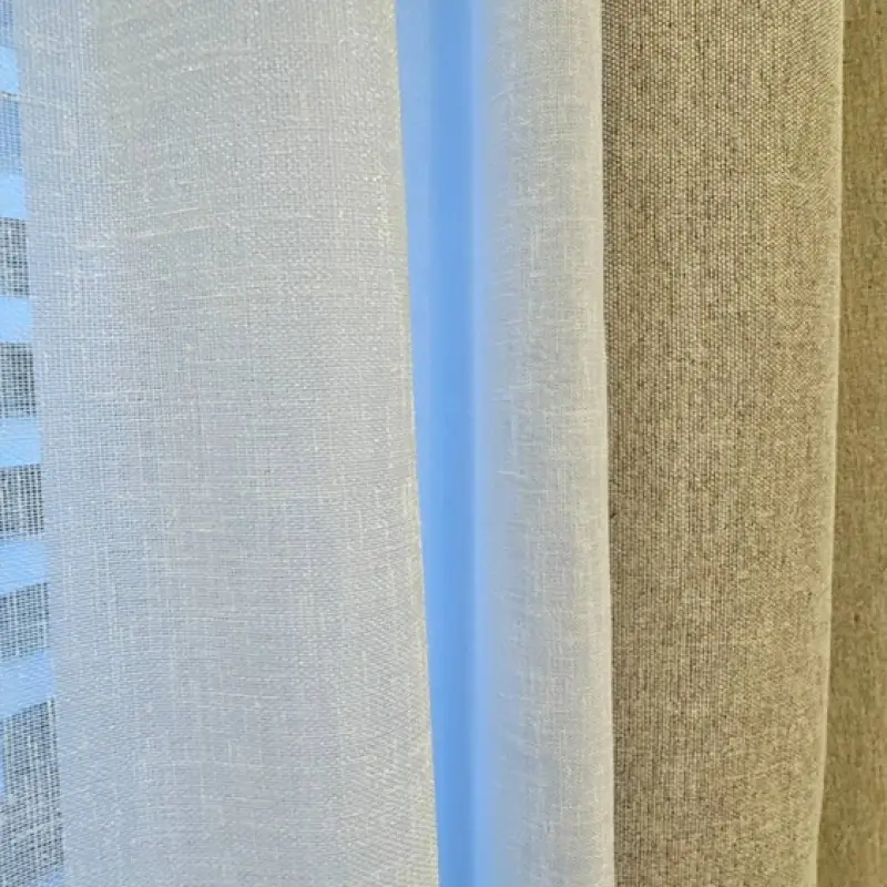 Изготовлены оба типа штор из 100% полиэстера класса “стандарт”. Итоговые размеры портьер составили 290 сантиметров по ширине и 260 по высоте. Для крепежа использовался алюминиевый профиль в классическом белом цвете.
