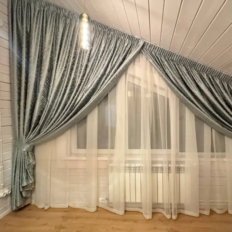 Портьеры и тюль на угловое окно в дом