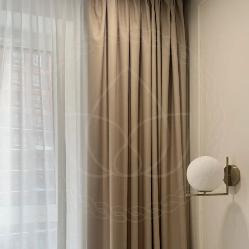 Портьеры в тёплых оттенках в ЖК "Матвеевский Парк"