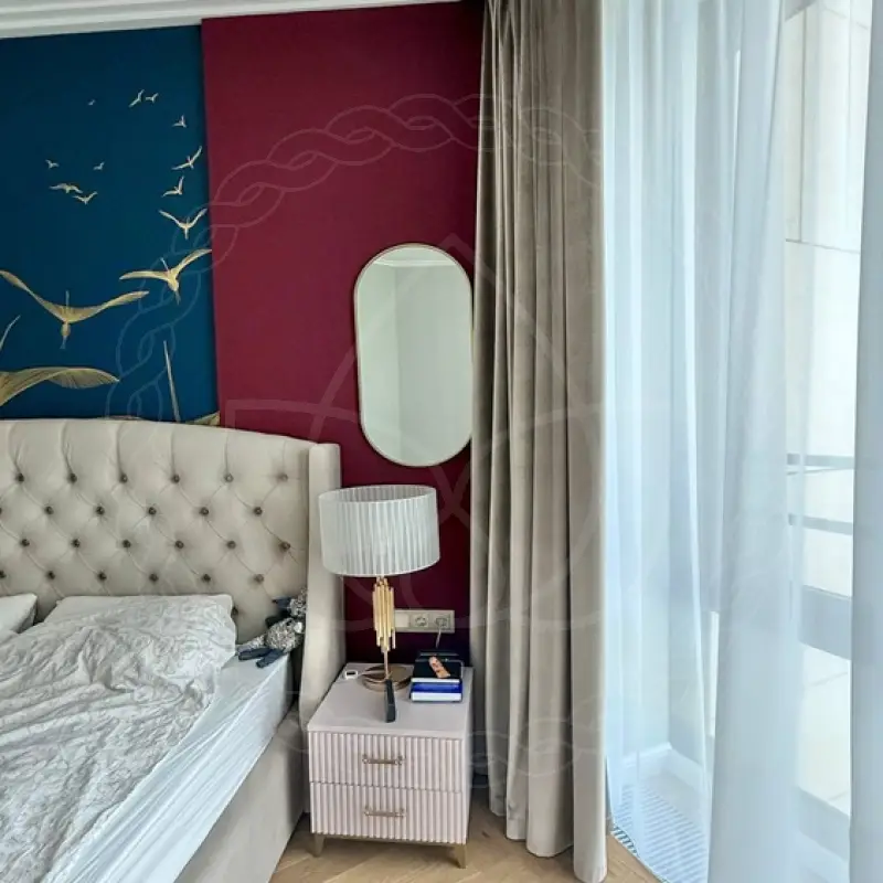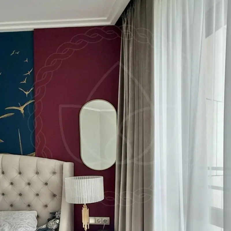 - Тип Портьеры из велюра и тюль с равномерной сборкой верха