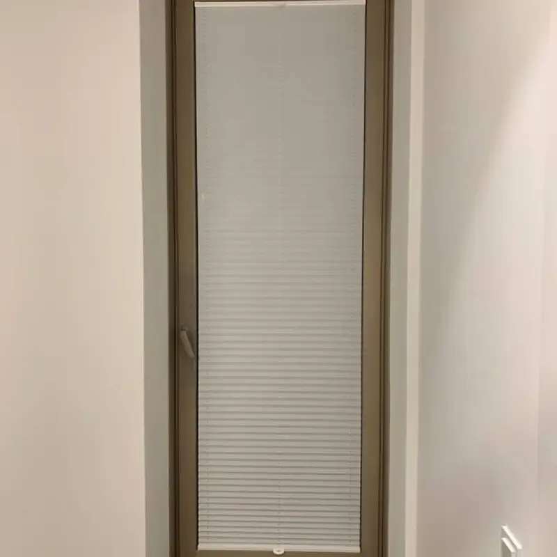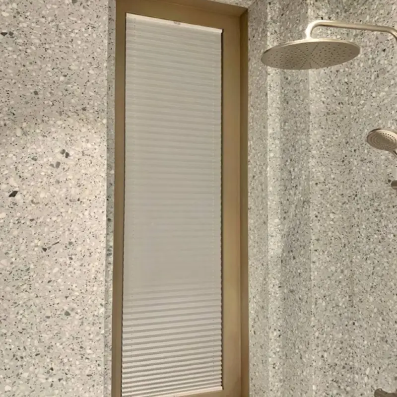 Шторы плиссе были изготовлены из полиэстера класса «Премиум». Итоговый размер – 70х120 сантиметров.