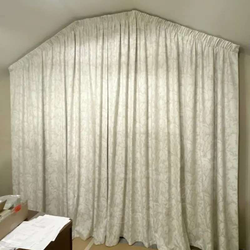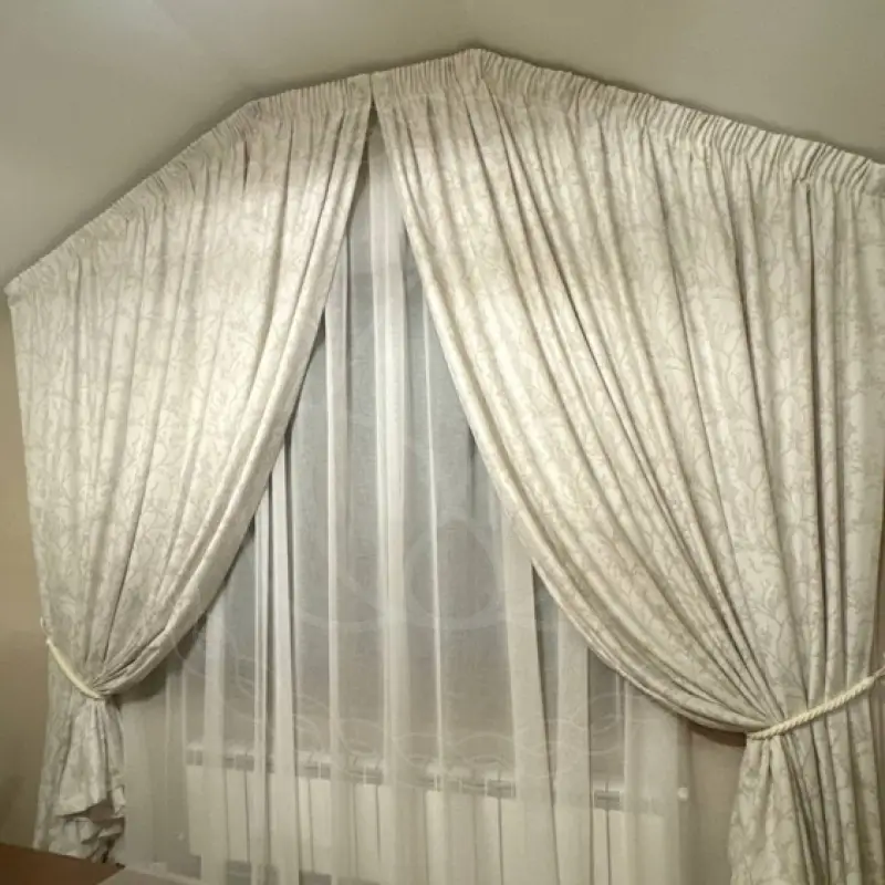 - Тип Портьеры и тюль с равномерной сборкой верха на окно сложной формы