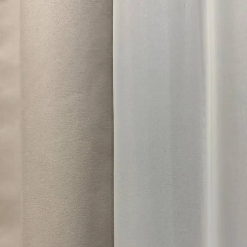 Для гостиной в своей квартире хозяева выбрали весьма лаконичный дизайн. Здесь очень много света и пространства, а цветовая палитра представлена преимущественно светлыми тонами — белого, бежевого, коричневого. Конечно же, шторы для такого интерьера тоже должны быть выдержаны в минималистичном стиле. Поэтому мы предложили этот вариант прямых портьер с равномерной сборкой. Они однотонные, но, за счет выраженной текстуры, имитирующей костюмную ткань, не выглядят скучными или блеклыми. Благодаря нежному молочному оттенку материи, которая немного темнее стен, шторы смотрятся здесь максимально естественно и органично.