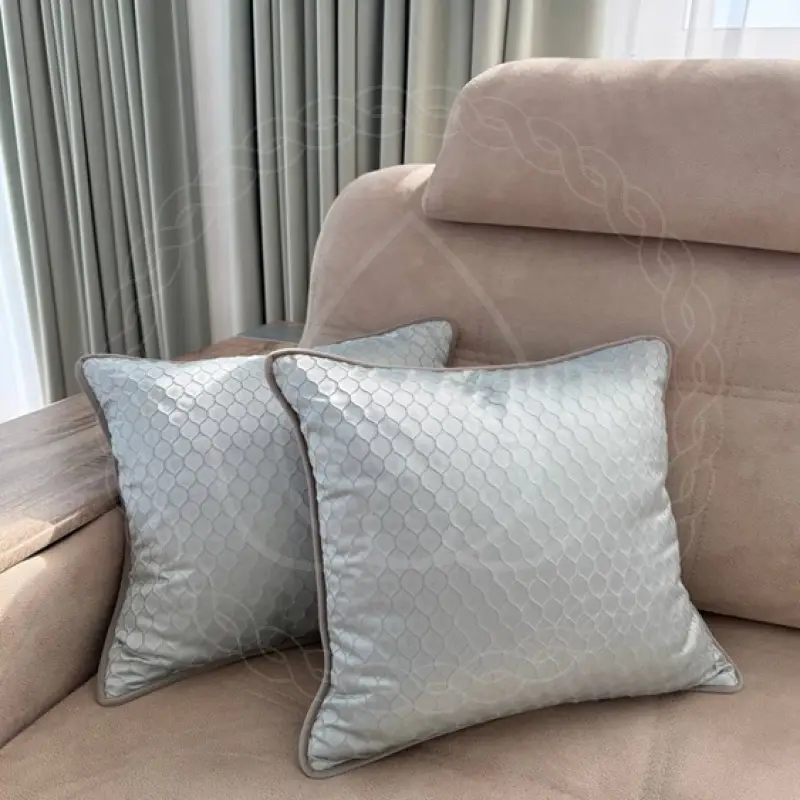 Новый декор для окон безусловно делает атмосферу в гостиной расслабленной и уютной. Особенно в этом помогает мягкая фактура велюровой ткани, которая, как правило, ассоциируется с комфортом и уютом. Цветовую гамму для него мы выбрали универсальную. Шторы в белоснежных и светло-серых тонах хорошо смотрятся в антураже светлого зала с белыми стенами и потолком, а также отлично сочетаются с бледно-коричневым полом с имитацией древесной текстуры и декоративными подушками в близкой серо-серебристой цветовой гамме.