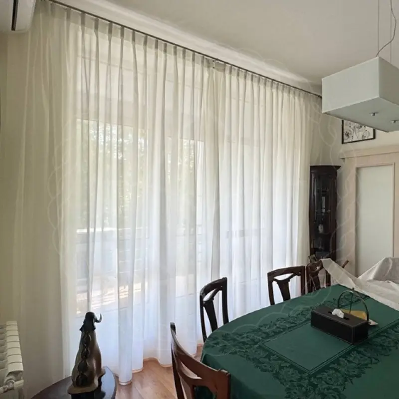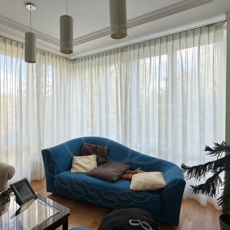 Тюль на панорамные окна кухни-гостиной