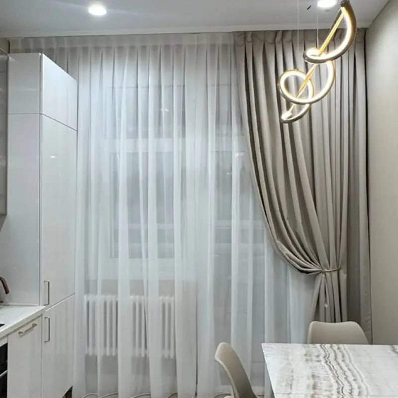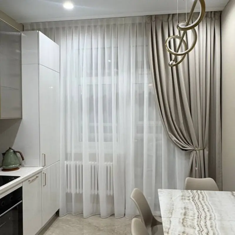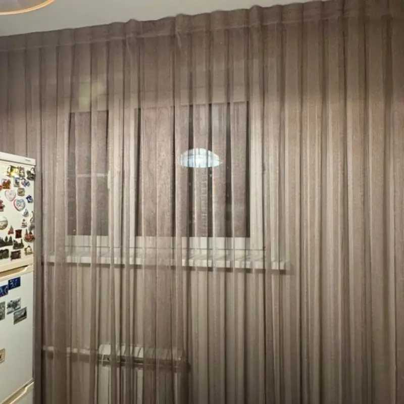 Дизайн этой стильной тюлевой шторы придумала наш декоратор Анастасия. Проект разрабатывался по запросу Всеволода, который живет на проспекте Мира (станция метрополитена “Алексеевская”)