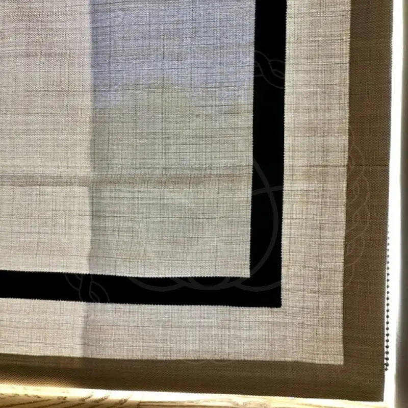 органично включить новые шторы в интерьер, деликатно выделив оконную зону за счет контрастного канта на полотне.