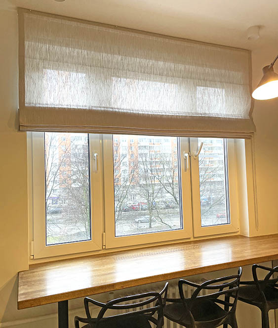 Наши заказчики, семья Корниловых из дома на Матвеевской улице, недавно завершили ремонт на кухне и сделали на ней подоконник-столешницу. У такого дизайнерского решения есть свои плюсы — например, экономия места и возможность наслаждаться видом из окна во время еды. Однако оно также накладывает некоторые ограничения при выборе портьер. Для стола-подоконника подходят только короткие шторы.