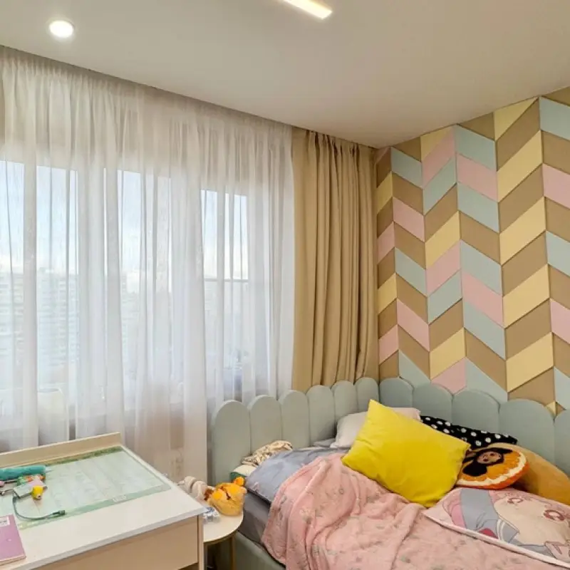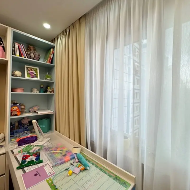 Очень качественная работа. Приехали на дом с большим выбором тканей. Девушка Елена помогла подобрать лучшие варианты. Детская получилась просто супер, дети в восторге.